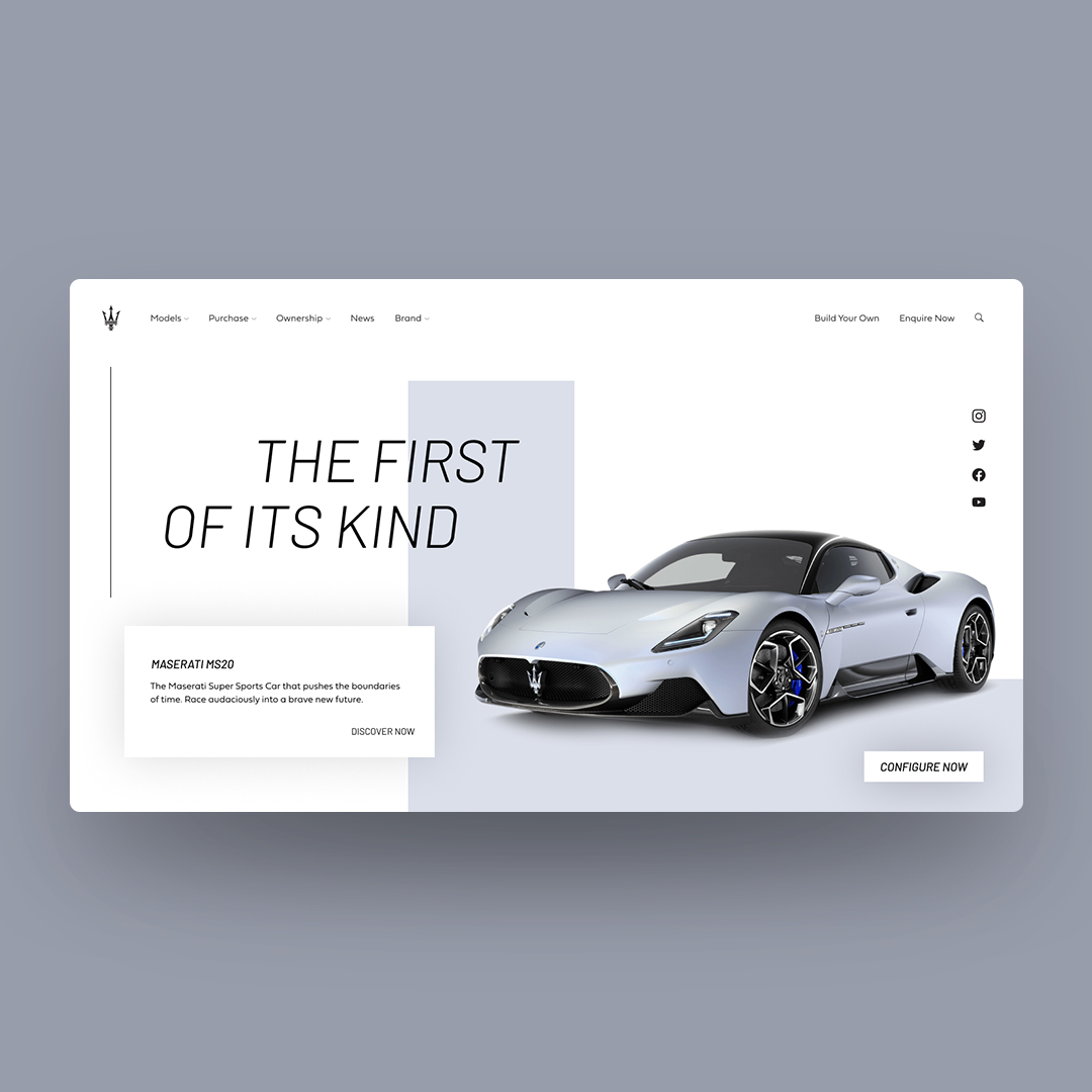 A fun mini redesign project redesigning the landing page for Maserati promoting their MS20 supercar.