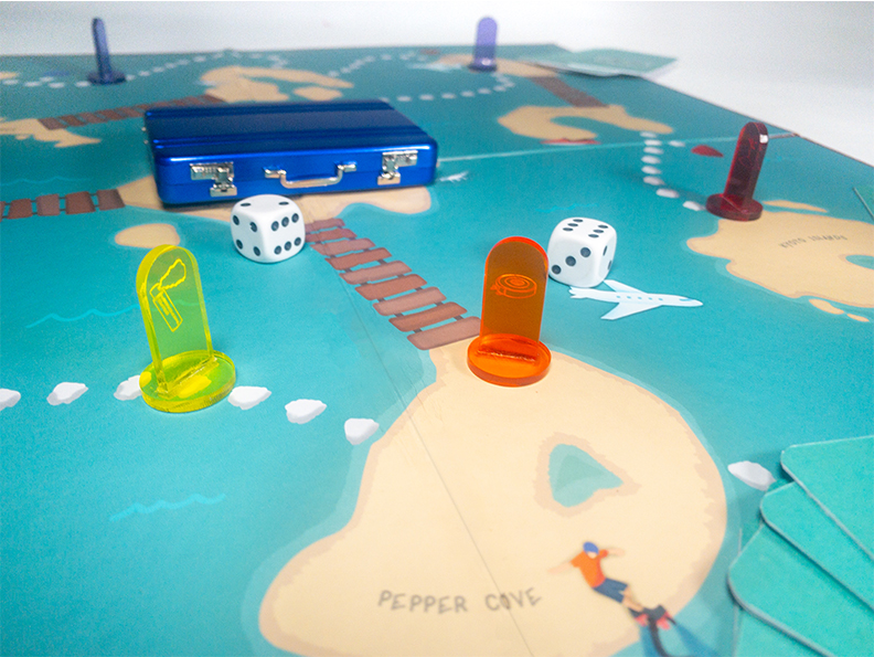 < Back to PortfolioA board game I designed as part of my final dissertation piece. Geo Archipelago is a board game based on the ongoing climate crisis and impacts of geoengineering as a potential solution. Each component was made from scratch this resulted in using basic printing skills to print playing cards and the board, to using a CNC laser cutter to manufacture the counters.