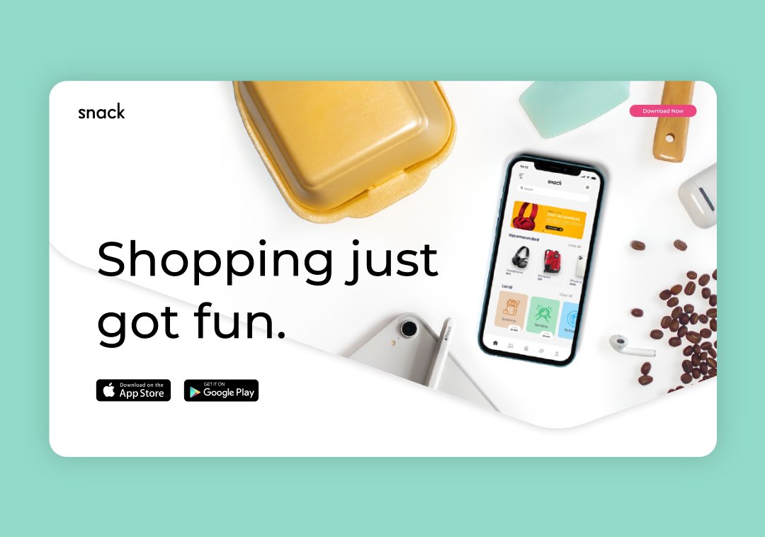 < Back to PortfolioA client project designing a promotional landing page for the online shopping app Snack. Snack merges social media and shopping into one fun app, encouraging users to share their new purchases and using group buy features to get a better deal.